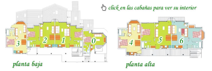 A continuacion puede observar un plano de las cabañas. Haciendo click en cualquiera de las unidades usted podra ver fotos en su interior y una descripcion mas detallada de los servicios incluidos. |